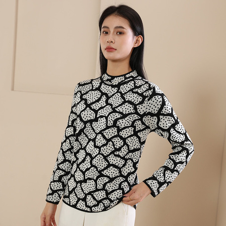 阙兰绢丝羊毛半高领提花打底衫·黑色