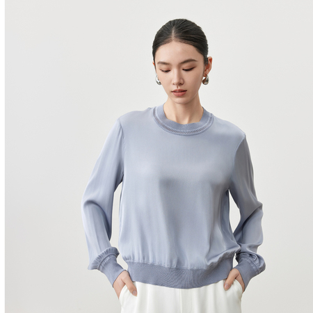 阙兰绢优雅蚕丝上衣·雾霾蓝