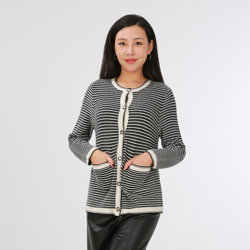 阙兰绢丝羊毛法式条纹开衫·黑白