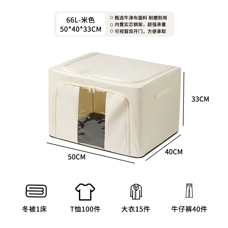 牛津布折叠百纳箱衣物整理箱棉被收纳箱66L*3个装·米色
