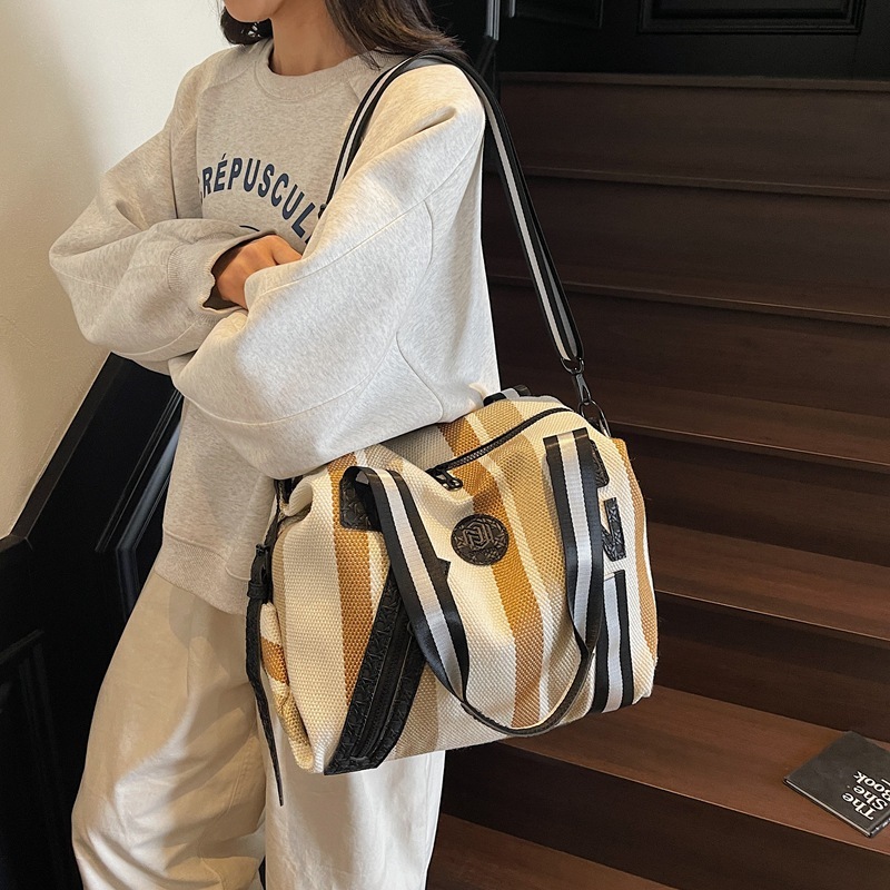 斐尚复古条纹帆布旅行包NJ-3018·卡其色